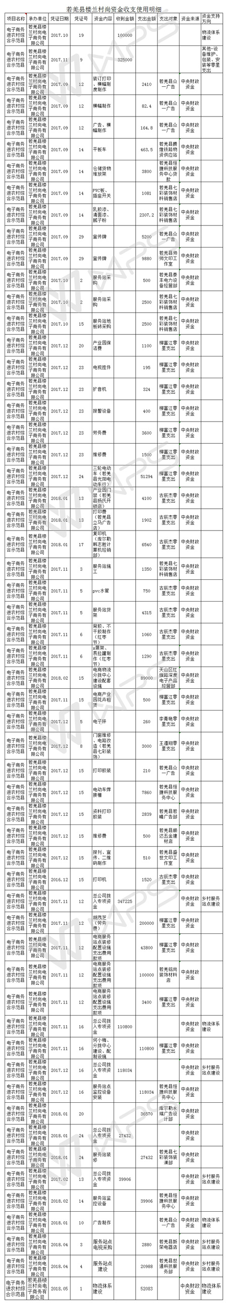 若羌县专项资金使用明细